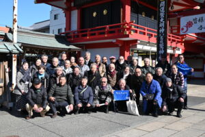 2026年1月24日(土)令和8年初詣会が開催されました。「NHK大河ドラマ・蔦重ゆかりの地、吉原界隈を巡る」と銘打ち、2025年のNHK大河ドラマで放映された吉原界隈の寺社仏閣・名所を巡りました。36名が参加し好天に恵まれ、鷲神社で初詣・記念撮影を行いました。午後からは懇親会で大いに盛り上がりました。